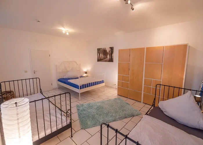 The apartment comes equipped with self-catering amenities, including a full kitchen, and a place for dining and an outdoor dining area for guests to enjoy. With the inclusion of coffee/tea making facilities, the accommodation ensures that guests have a comfortable and effortless stay. The nearest airport is Frankfurt airport, 45 km from 55M^2 2 Zimmer-Monteurswohnung Mit 4 Einzelnen Betten in Nieder-Saulheim.